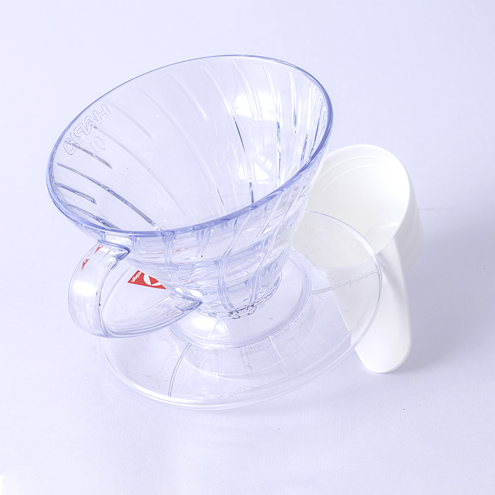 Projetado em formato cônico ‘V’ e um ângulo de 60°, o coador Hario V60 é escolha certeira de baristas e apaixonados por café no mundo todo. As espirais na parte interna, que facilitam a expansão do pó de café, e uma grande abertura na base do coador, que permite controlar a velocidade do fluxo de água, são dois dos detalhes que o diferencia dos coadores comuns.